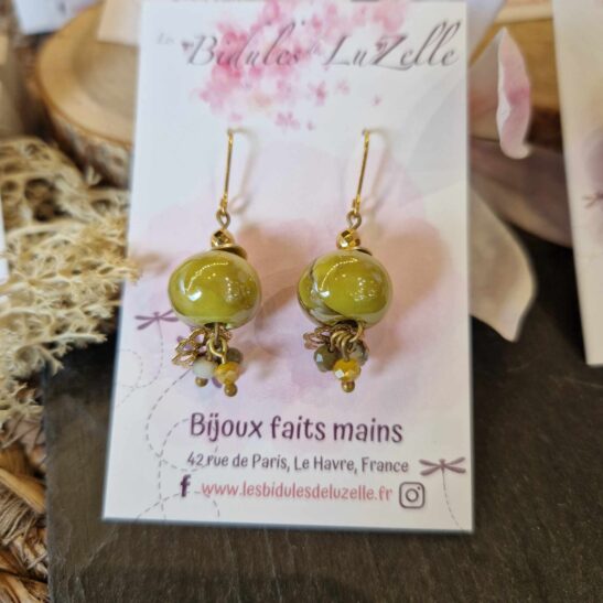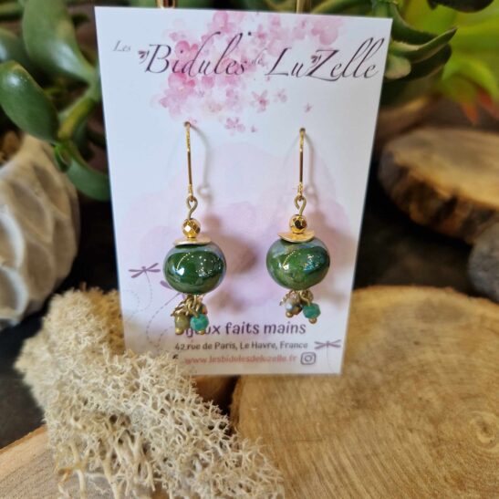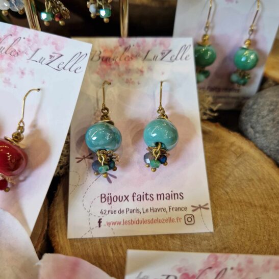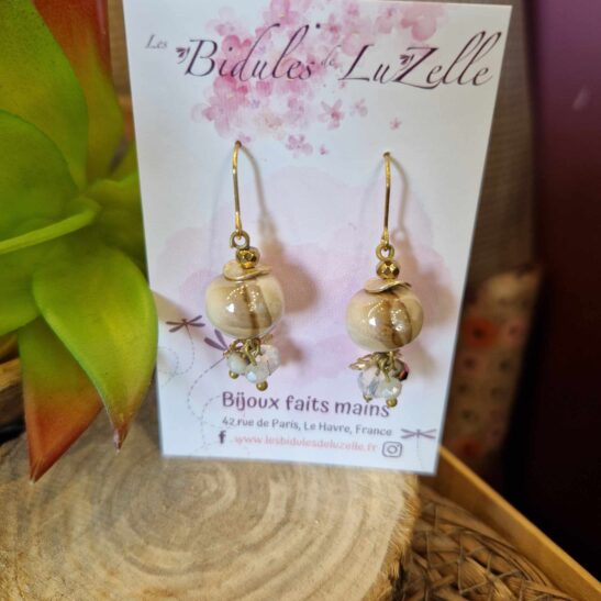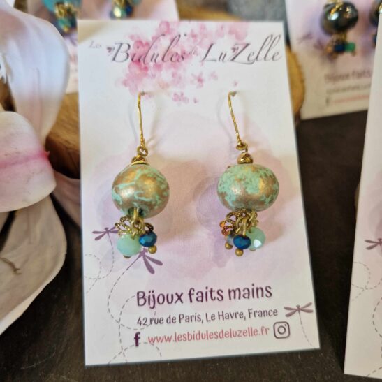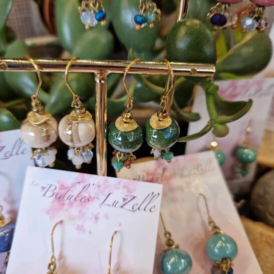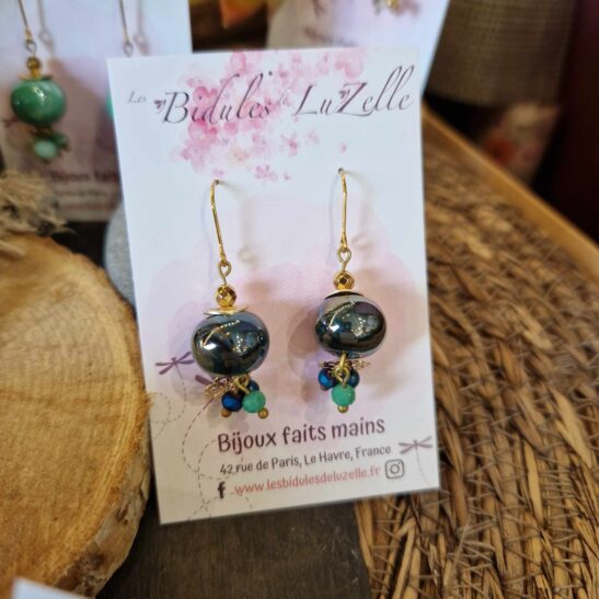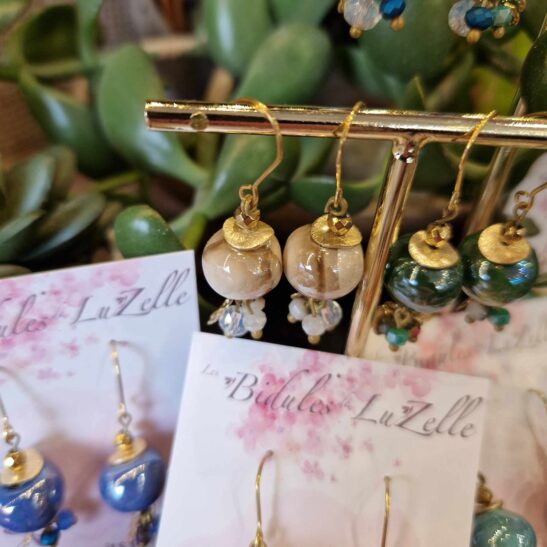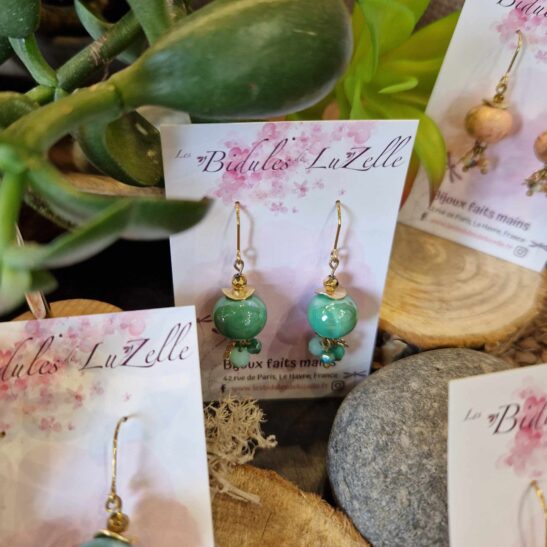 Les boucles d’oreilles ALIX sont composées et montées par LuZelle, en boutique, à partir de composants sélectionnés avec soin