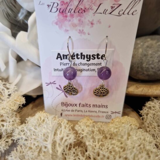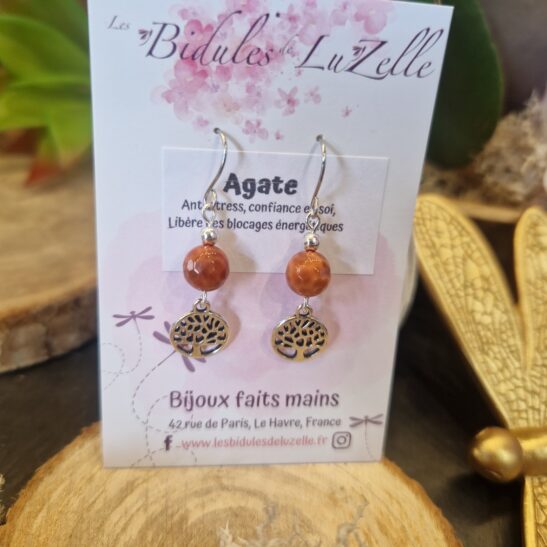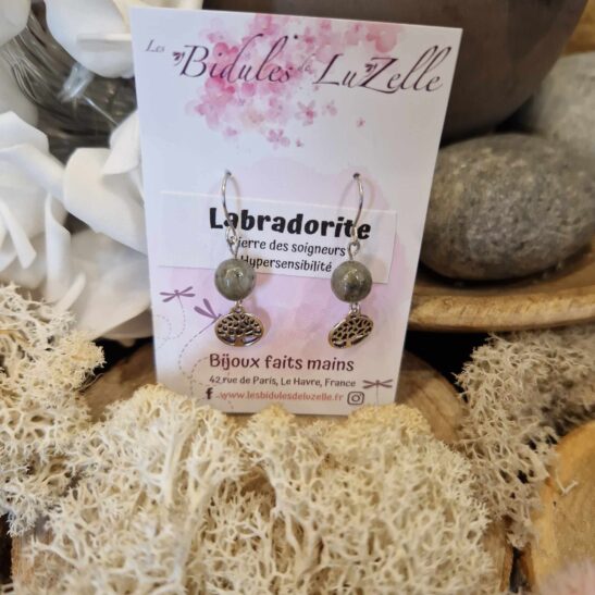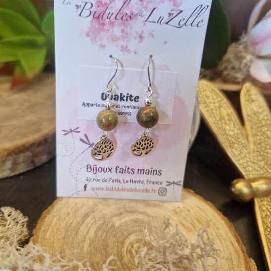 BODHI ou Arbre de vie associé aux pierres naturelles pour des boucles d’oreilles tout en sagesse et originalité