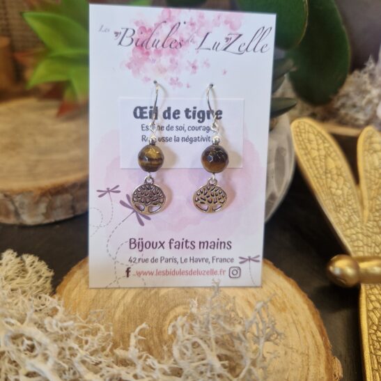 BODHI boucles d’oreilles pierres naturelles et arbre de vie