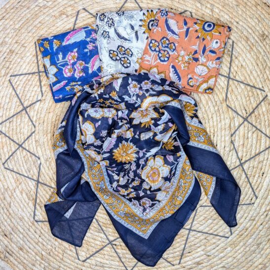 Belles dimensions 90 x 90 cm, ils se portent facilement et agrémentent toutes vos tenues.