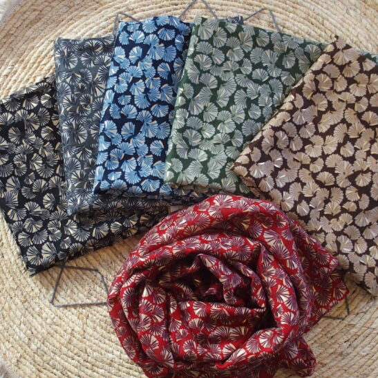 FELICITE foulard motifs petites feuilles de ginkgo biloba