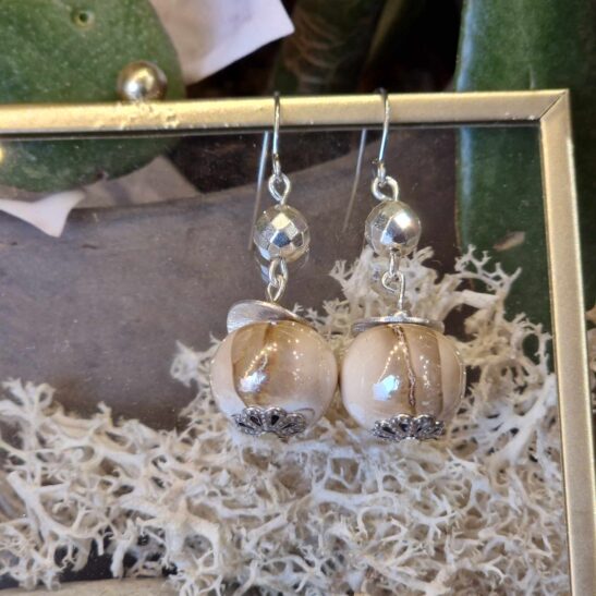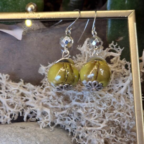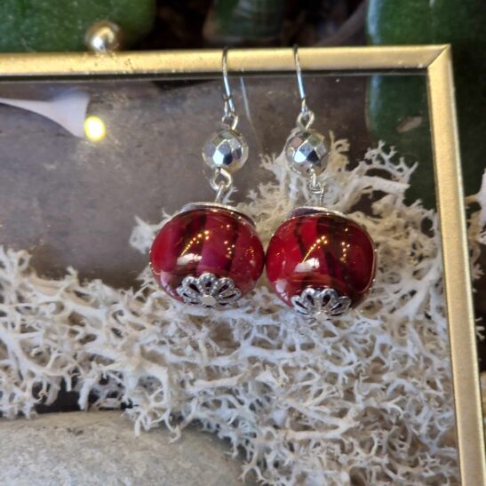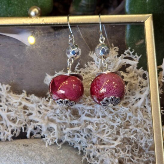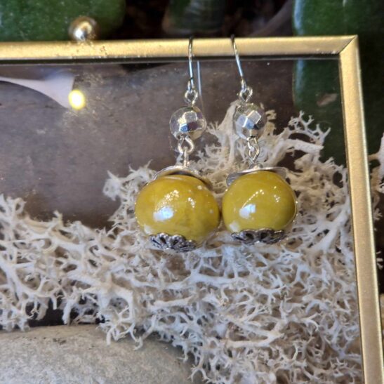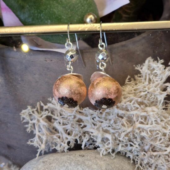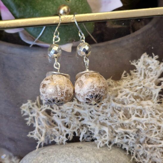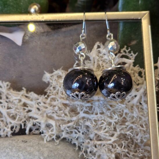 Perles de céramique artisanale agrémentées d’hématites facettées