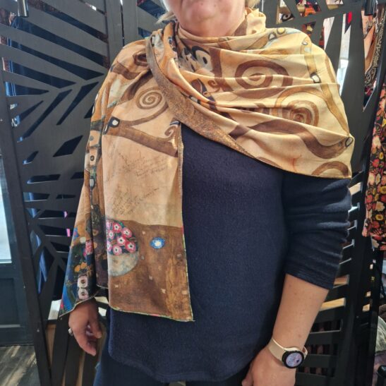 Un foulard délicat reproduction du tableau de GUSTAV KLIMT LE BAISER