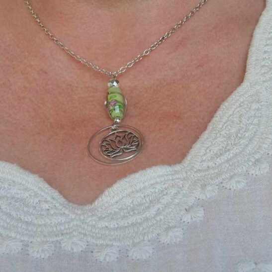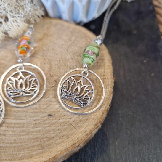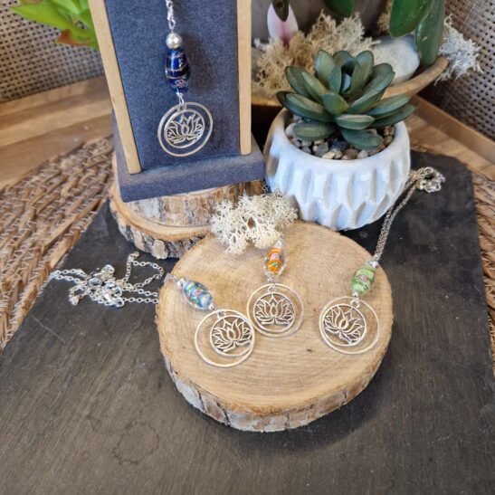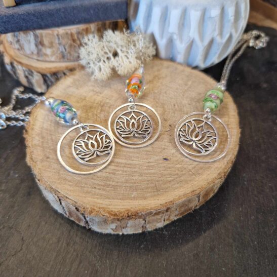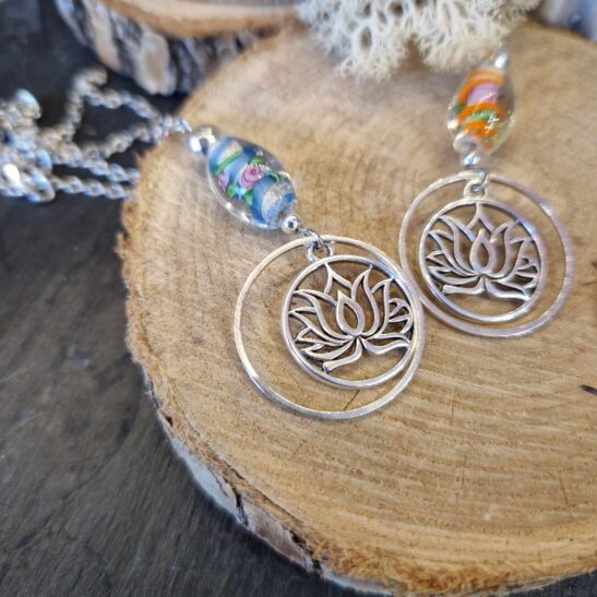 LuZelle vous la propose associée à de très jolies perles de verre dans l’esprit Murano.
