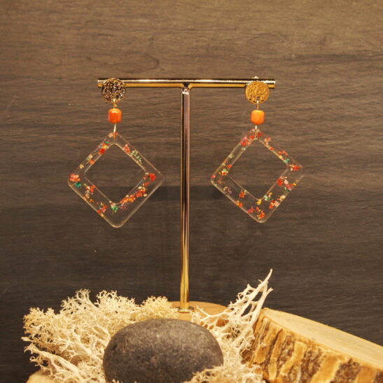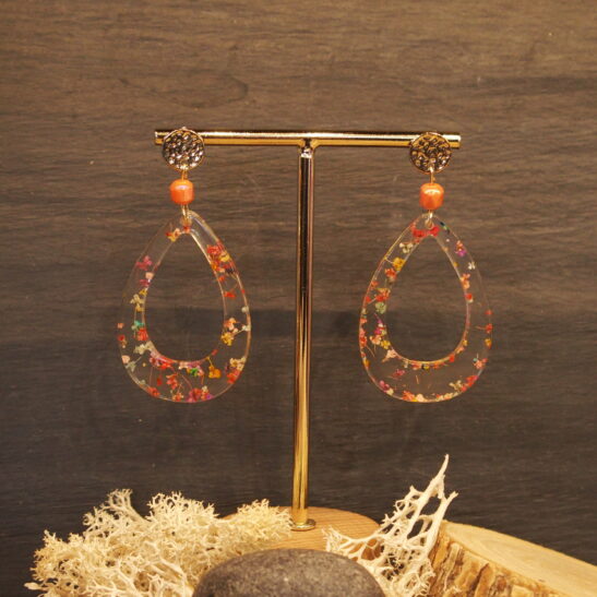 Boucles d’oreilles en résine transparente avec incrustation fleurs colorées