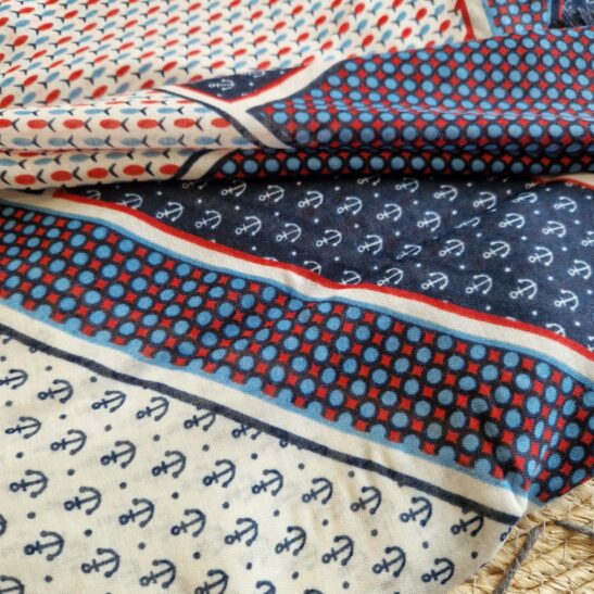Ses motifs ancres de marines et poissons sont originaux