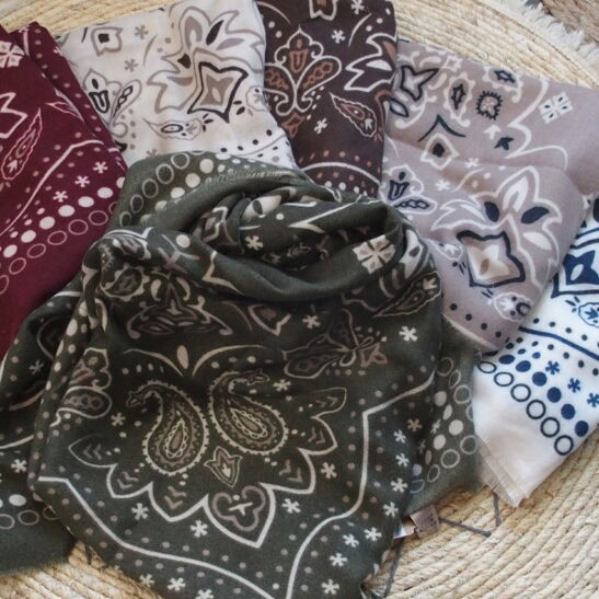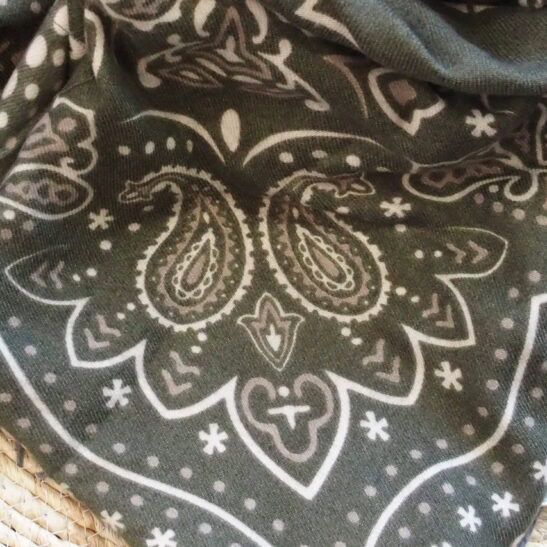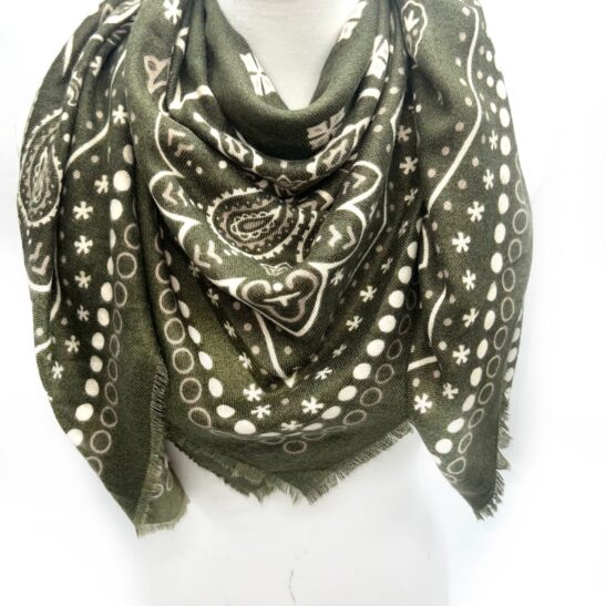Imprimé BANDANA sur une grande écharpe carrée en lainage